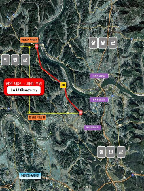 [¿¡ÄÚȯ°æÀϺ¸ °æ³²ÇÔ¾È=À̽ŵ¿±âÀÚ] ÇԾȱºÀº Á¦6Â÷ ±¹µµ¡¤±¹Áöµµ °Ç¼³°èȹ¿¡ ±¹°¡Áö¿øÁö¹æµµ 60È£¼±(ÇÔ¾È ´ë»ê~ÀÇ·É ºÎ¸²) ±¸°£ÀÌ Àϰý ¿¹ºñŸ´ç¼º Á¶»ç(Àϰý¿¹Å¸) ´ë»ó»ç¾÷À¸·Î ¼±Á¤µÆ´Ù°í ¹àÇû´Ù. Á¦6Â÷ ±¹µµ‧±¹Áöµµ °Ç¼³°èȹÀº 2026³âºÎÅÍ 2030³â±îÁöÀÇ¡¦
