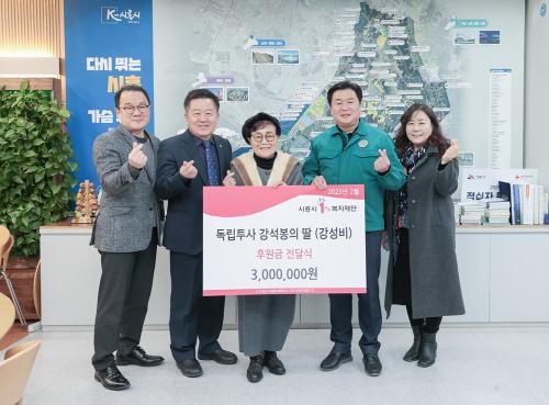 [¿¡ÄÚȯ°æÀϺ¸ ½ÃÈï½Ã=À̽ŵ¿±âÀÚ] ½ÃÈï½Ã¿¡ Áö³­ 24ÀÏ µ¶¸³Åõ»ç °í(ͺ) °­¼®ºÀ ¼±»ýÀÇ ÈļÕÀÌ ¹æ¹®ÇØ ½ÃÈï½Ã1%º¹ÁöÀç´ÜÀ» ÅëÇØ Àú¼ÒµæÃþÀ» Áö¿øÇÏ´Â ÈÄ¿ø±Ý 300¸¸ ¿øÀ» ±âŹÇß´Ù. µ¶¸³¿îµ¿°¡·Î Ȱµ¿ÇÑ °­¼®ºÀ ¼±»ýÀº 1942³â 2¿ù ÀϺ» ½ÅÈ£½Ã(ãêûÂã¼)¿¡¼­ ½Åµ¿ÇÏ ¼±»ý¡¦