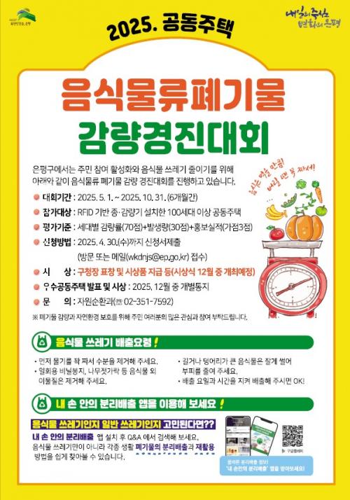 [¿¡ÄÚȯ°æÀϺ¸ ÀºÆò±¸=À̽ŵ¿±âÀÚ] ÀºÆò±¸´Â À½½Ä¹°·ù Æó±â¹° ÀüÀÚű×(RFID) Á¾¡¤°¨·®±â¸¦ ¼³Ä¡ÇÑ 100¼¼´ë ÀÌ»óÀÇ °øµ¿ÁÖÅÃÀ» ´ë»óÀ¸·Î ¡®À½½Ä¹°¾²·¹±â °¨·®°æÁø´ëȸ¡¯¸¦ ÇÑ´Ù°í ¹àÇû´Ù. ÀºÆò±¸´Â À½½Ä¹°·ù Æó±â¹° ÃÑ ¹ß»ý·®ÀÇ 77%°¡ °¡Á¤¿ë ¹èÃâ·®¿¡¼­ ¹ß»ýÇϰí ÀÖ¡¦