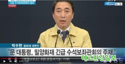 ¹®ÀçÀÎ ´ëÅë·ÉÀº ¹Ð¾ç º´¿ø ÈÀç¿Í °ü·ÃÇÏ¿© Àá½Ã Àü ±ä±Þ ¼ö¼®º¸Á°üȸÀǸ¦ ¼ÒÁýÇϰí, Á¦Ãµ ÈÀç ¹ß»ý ÀÌÈÄ ¾ó¸¶ Áö³ªÁö ¾Ê¾Æ ¹Ð¾ç ¼¼Á¾º´¿ø¿¡¼ ÈÀç°¡ ¹ß»ýÇÏ¿© ¸¹Àº »ç»óÀÚ°¡ ¹ß»ýÇÏ¿´°í, ÇöÀç ÈÀç´Â Áø¾ÐµÇ¾úÀ¸³ª »ç¸ÁÀÚ ¼ö°¡ Áõ°¡ÇÒ °¡´É¼ºµµ ¹èÁ¦ÇÒ ¼ö ¾ø´Â »óȲ¿¡ ´ëÇÏ¿© ¾ÈŸ±î¿òÀ» ±ÝÇÒ ¼ö ¾ø´Ù¸ç,