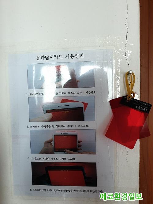 [¿¡ÄÚȯ°æÀϺ¸=±ÇÁöÇý±âÀÚ] °Åⱺ °¡Á¶¸é(¸éÀå ·ùÇöº¹)Àº û»ç ³» ÈÀå½ÇÀ» ÀÌ¿ëÇÏ´Â ¿©¼ºµéÀÇ ºÒ¾È°¨ ÇØ¼Ò¸¦ À§ÇØ ¸ôÄ« ¹æÁö ¾È½É ½ºÅ©¸°À» ¼³Ä¡Çϰí ÈÞ´ë¿ë ¸ôÄ« ŽÁö Ä«µå¸¦ ºñÄ¡Çß´Ù.