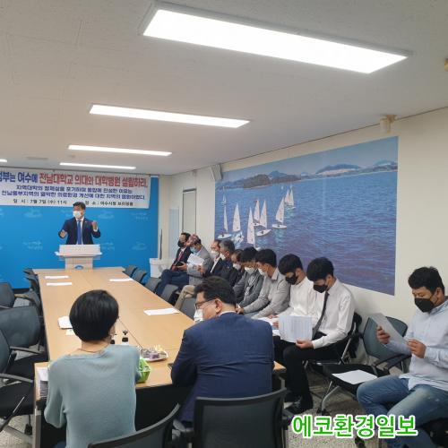 ¿©¼ö½ÃÀÇȸ °í¿ëÁø ÀÇ¿ø(Àü³²´ëÇб³ ¿©¼öÄ·ÆÛ½º ÃÑÇлýȸ ¿ª´ëȸÀå´Ü ´ëÇ¥)Àº 7ÀÏ ¿©¼ö½Ãû ºê¸®Çη뿡¼ ¡°2005³â ¿©¼ö´ë¿Í Àü³²´ë ÅëÇÕ¾çÇØ°¢¼¿¡ ¸í½ÃµÈ ÀÇ´ë¿Í º´¿ø ¼³¸³¿¡ ´ëÇÑ ¾à¼ÓÀ» ÀÌÇàÇÏ¿© ½Å·Ú¸¦ ȸº¹Çϵµ·Ï °·ÂÈ÷ Ã˱¸ÇÑ´Ù¡±°í ¹àÇû´Ù.
