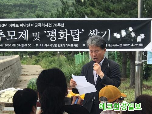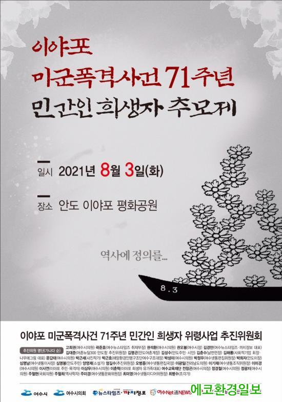 ÀÌ¾ßÆ÷ ¹Ì±ºÆø°Ý»ç°Ç 71Áֳ⠹ΰ£ÀÎÈñ»ýÀÚ À§·É»ç¾÷ÃßÁøÀ§¿øÈ¸(ÀÌÇÏ ¡®ÃßÁøÀ§¡¯. À§¿øÀå ¾ö±æ¼ö)´Â ¿©¼ö½Ã¿Í ¿©¼ö½ÃÀÇȸ ÈÄ¿øÀ¸·Î 1950³â 8¿ù 3ÀÏ ÀÌ¾ßÆ÷ ÇØº¯¿¡¼ ÀÖ¾ú´ø ¹Ì±º±â Æø°Ý»ç°Ç ÇÇÇØÀÚ Ã߸ðÁ¦¸¦ ¿À´Â 8¿ù 3ÀÏ ´çÀÏ ÀÌ¾ßÆ÷ ÇöÀå¿¡¼ °®´Â´Ù°í ¹àÇû´Ù.