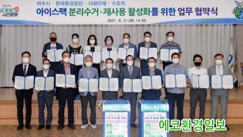 [¿¡ÄÚȯ°æÀϺ¸=±è±â³² ±âÀÚ] COP28 À¯Ä¡ Á߽ɵµ½Ã ¿©¼ö½Ã(½ÃÀå ±Ç¿ÀºÀ)°¡ 31ÀÏ ½Ãû ȸÀǽǿ¡¼­ Çѱ¹È¯°æ°ø´Ü, ½Ã¹Î»çȸ´Üü, »óÀÎȸ µî°ú ¾ÆÀ̽ºÆÑ Àç»ç¿ë Ȱ¼ºÈ­¸¦ À§ÇÑ ¾÷¹«Çù¾àÀ» ü°áÇß´Ù°í ¹àÇû´Ù.