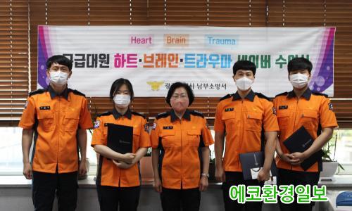ÀÌ ³¯ ÇÔ²² ¼±Á¤µÈ ¡®ºê·¹Àμ¼À̹ö(Brain Saver)¡¯´Â ±Þ¼º ³úÁ¹Áß È¯ÀÚ¿¡°Ô ½Å¼Ó¡¤Á¤È®ÇÑ Æò°¡¡¤º´¿øÀ̼ÛÀ¸·Î ÈÄÀ¯Áõ ÃÖ¼ÒÈ¿¡ ±â¿©ÇÑ ±¸±Þ´ë¿ø¿¡°Ô ¼ö¿©ÇÏ´Â ÀÎÁõÁ¦µµ·Î ³²ºÎ¼Ò¹æ¼ ¿ù»ê119¾ÈÀü¼¾ÅÍ¿¡ ±Ù¹«ÇÏ´Â ±¸±Þ´ë¿ø 3¸íÀÌ ¼±Á¤µÇ¾ú´Ù.