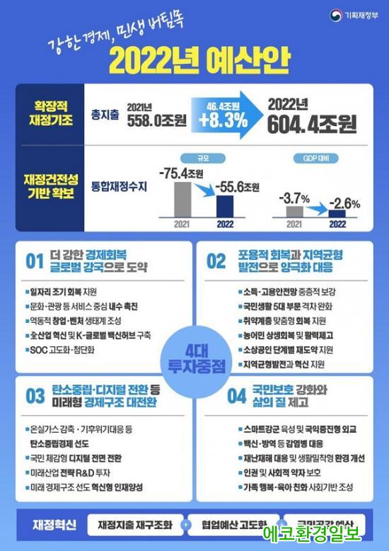Á¤ºÎ´Â 31ÀÏ ±¹¹«È¸ÀǸ¦ ¿¾î 2022³âµµ ¿¹»ê¾ÈÀ» 604Á¶ 4000¾ï¿øÀ¸·Î È®Á¤Çϰí, ³»´Þ 3ÀÏ ±¹È¸¿¡ Á¦ÃâÇÒ ¿¹Á¤ÀÌ´Ù.