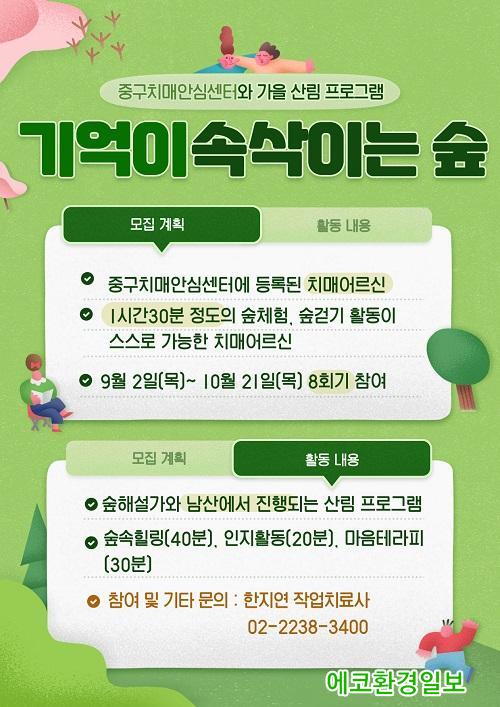 [¿¡ÄÚȯ°æÀϺ¸´º½º=Â÷¼À± ±âÀÚ] ¼¿ï½Ã Áߺΰø¿ø³ìÁö»ç¾÷¼Ò´Â Áß±¸Ä¡¸Å¾È½É¼¾ÅÍ¿Í ÇÔ²² ÀϹݡ¤°æµµÀÎÁöÀå¾Ö ³ëÀÎ, Ä¡¸Å ³ëÀÎÀ» µ¹º¸´Â °¡Á·À» ´ë»óÀ¸·Î °¡À»Ã¶ ³²»êµÑ·¹±æ »ê¸² Ä¡À¯ ÇÁ·Î±×·¥À» ³»ÀϺÎÅÍ 10¿ù ÇÑ ´Þ°£ ¿î¿µÇÕ´Ï´Ù.