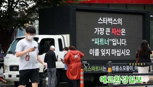 »çÁø=½ºÅ¸¹÷½ºÄÚ¸®¾Æ ÀϺΠÁ÷¿øµéÀÌ 7ÀÏ ¼­¿ï ¸¶Æ÷±¸ »ó¾Ïµ¿¿¡¼­ °úµµÇÑ À̺¥Æ®·Î ÀÎÇÑ ¾÷¹« °­µµ¿Í Àη³­ °³¼±À» ¿ä±¸ÇÏ´Â Æ®·°½ÃÀ§¸¦ Çϰí ÀÖ´Ù[»çÁøÃâó=´º½Ã½º]