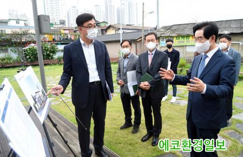 [¿¡ÄÚȯ°æÀϺ¸=¾ÈÀº°æ ±âÀÚ] ¾Èº´¿ë ÀÇÁ¤ºÎ½ÃÀåÀº 10¿ù 15ÀÏ ÀÇÁ¤ºÎµ¿ 287-35¹øÁö ÀÏ¿øÀÇ µµ½ÃÃë¾àÁö¿ª °³Á¶»ç¾÷(»õ¶ã¸¶À»)À» ÃßÁøÇϰí ÀÖ´Â ½ÅÈ︶À»À» ¹æ¹®, Àü¹ÝÀûÀÎ »ç¾÷°èȹ ¹× ÇöÀç ÃßÁø Áß¿¡ ÀÖ´Â ÁֹΰÅÁ¡°ø°£ Á¶¼º, ¸¶À»È¯°æÁ¤ºñ»ç¾÷(»ýȰÀÎÇÁ¶ó»ç¾÷)¿¡ ´ëÇÑ ÃßÁø »óȲÀ» Á¡°ËÇß´Ù.