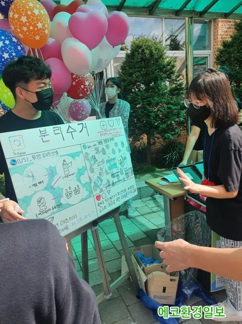 ƯÈ÷ Áö³ 14ÀÏ ±³³» ¿îµ¿È¸ ¶§ ȯ°æµ¿¾Æ¸®(US, ±Û·Î¹ú ¸®´õ½±) ÇлýµéÀÌ ÁÖÃàÀ» ÀÌ·ï Á¾ÀÌÆÑ ÀçȰ¿ë Ä·ÆäÀÎ ºÎ½º¸¦ ¿î¿µÇß´Ù. Çлýµé ½º½º·Î ź¼ÒÁ߸³ ½Çõ ¹æ¾È¿¡ ´ëÇØ »ý°¢ÇÏ°í ½ÇõÇÏ´Â µî ÀÇ¹Ì ÀÖ´Â ½Ã°£À» °¡Á³´Ù.