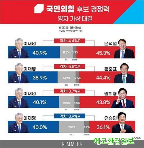 À± Àü °ËÂûÃÑÀåÀº 45.3%·Î, ÀÌ Èĺ¸(40.9%)¿¡ ¿ÀÂ÷¹üÀ§ À̳»ÀÎ 4.4%Æ÷ÀÎÆ® ¾Õ¼¹À¸¸ç, ¿øÈñ·æ Àü Á¦ÁÖÁö»ç´Â 43.8%·Î ÀÌ Èĺ¸(40.1%)¸¦ 3.7%Æ÷ÀÎÆ® ¾Õ¼¹´Ù.