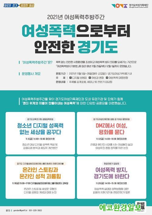 [¿¡ÄÚȯ°æÀϺ¸´º½º=¹èÁöÀ± ±âÀÚ] °æ±âµµ¿©¼º°¡Á·Àç´ÜÀÌ ¡®2021³â ¿©¼ºÆø·ÂÃß¹æÁÖ°£¡¯À» ¸Â¾Æ ¿©¼º Æø·Â¿¡ ´ëÇÑ °ø°¨´ë È®»êÀ» À§ÇØ ³× Â÷·Ê ±âȹÇà»ç¸¦ °³ÃÖÇÕ´Ï´Ù.