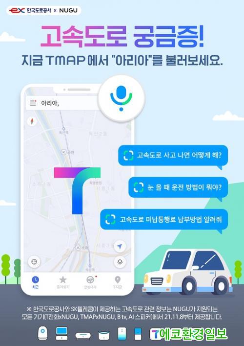 SKT¿Í Çѱ¹µµ·Î°ø»ç°¡ À̹ø ¼ºñ½º¸¦ ÅëÇØ °í°´¿¡°Ô Á¦°øÇÏ´Â °í¼Óµµ·Î Á¤º¸´Â ¡ã°í¼Óµµ·Î ¾ÈÀü ¡ãÈÞ°Ô¼Ò ¿µ¾÷ ¡ã¿îÀü »ó½Ä ¡ã°ü±¤Áö Á¤º¸ µî 600¿©°³·Î, ¡®TMAP x NUGU¡¯ᆞ¡®NUGU auto¡¯ᆞ¡¯TÀüÈ x ´©±¸¡¯ᆞ¡¯´©±¸ ½ºÇÇÄ¿¡¯ µî ¡®´©±¸¡¯°¡ Áö¿øµÇ´Â ¸ðµç ±â±â ¹× ¼ºñ½º¿¡¼ À½¼ºÀ» ÅëÇØ È®ÀÎ °¡´ÉÇÏ´Ù.