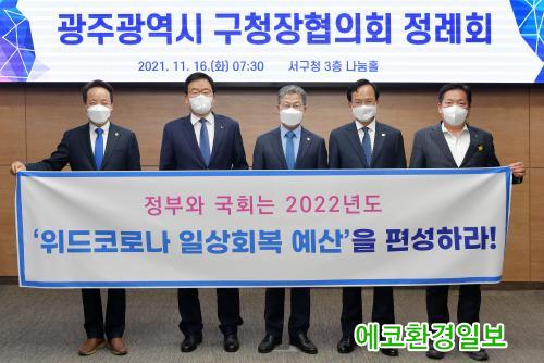 [¿¡ÄÚȯ°æÀϺ¸=±èÀçÂù±âÀÚ] 16ÀÏ ±¤Áֽñ¸Ã»ÀåÇùÀÇȸ(ȸÀå ¹®ÀÎ)¿¡ µû¸£¸é ÀÓÅà µ¿±¸Ã»Àå, ¼´ë¼® ¼±¸Ã»Àå, ±èº´³» ³²±¸Ã»Àå, ¹®ÀÎ ºÏ±¸Ã»Àå, ±è»ïÈ£ ±¤»ê±¸Ã»Àå µî 5°³ ±¸Ã»ÀåÀÌ Âü¼®ÇÑ È¸ÀÇ¿¡¼ À§µåÄڷγª ÀÏ»óȸº¹À» À§ÇÑ 2022³âµµ Á¤ºÎ¿¹»êÀ» Æí¼ºÇØ ÁÙ °ÍÀ» Á¤ºÎ¿Í ±¹È¸¿¡ Ã˱¸Çß´Ù.