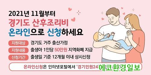 [¿¡ÄÚȯ°æÀϺ¸´º½º=¹èÁöÀ± ±âÀÚ] °æ±âµµ°¡ Ãâ»ê°¡Á¤¿¡ 50¸¸ ¿øÀ» Áö¿øÇÏ´Â ¡®°æ±âµµ »êÈÄÁ¶¸®ºñ Áö¿ø»ç¾÷¡¯ Á¢¼ö ¹æ¹ýÀ» ¿Â¶óÀÎÀ¸·Î È®´ëÇÕ´Ï´Ù.