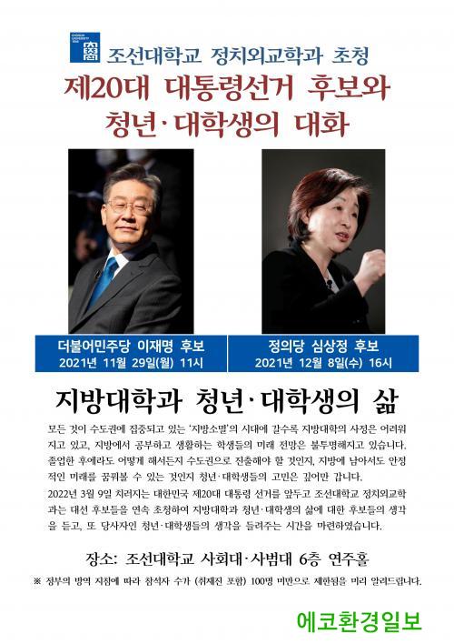 [¿¡ÄÚȯ°æÀϺ¸=±èÀçÂù ±âÀÚ] Á¶¼±´ëÇб³ Á¤Ä¡¿Ü±³Çаú°¡ ´õºÒ¾î¹ÎÁÖ´ç ÀÌÀç¸í ´ë¼± Èĺ¸¿Í Á¤ÀÇ´ç ½É»óÁ¤ ´ë¼± È常¦ ÃÊÃ»ÇØ ¡®Áö¹æ´ëÇаú û³â¤ý´ëÇлýÀÇ »î¡¯¿¡ ´ëÇÑ ´ëÈÀÇ ½Ã°£À» ¸¶·ÃÇÑ´Ù.