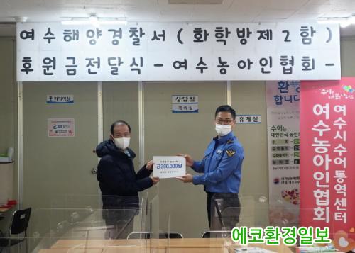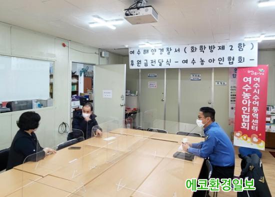 ¿©¼öÇØ°æÀº ¿À´Ã ¿ÀÈÄ 1½Ã 30ºÐ²² Àü³² ¿©¼ö½Ã¿¡ À§Ä¡ÇÑ ¡®¿©¼ö½Ã ¼ö¾îÅ뿪¼¾ÅÍ¡¯¸¦ ¹æ¹®ÇØ °æ¿¬´ëȸ ¿ì¼öÇÔÁ¤¿¡¼­ ¹ÞÀº Æ÷»ó±Ý Àü¾×À» À§¹®±ÝÀ¸·Î Àü´ÞÇß´Ù.