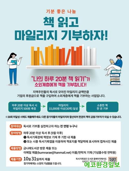 [¿¡ÄÚȯ°æÀϺ¸´º½º=ÀÌÁö¿ø ±âÀÚ] ±Ýõ±¸¸³ ±Ý³ª·¡µµ¼°üÀÌ ¡®¸ÅÀÏ 20ºÐ µ¶¼±âºÎ¡¯ Ä·ÆäÀÎÀ» ÅëÇØ ¸ðÀÎ ¸¶Àϸ®Áö ±âºÎ±ÝÀ¸·Î ¾Æµ¿µµ¼¸¦ ±¸ÀÔÇØ Áö¿ª¾Æµ¿¼¾ÅÍ 2°÷¿¡ ±âÁõÇß½À´Ï´Ù.