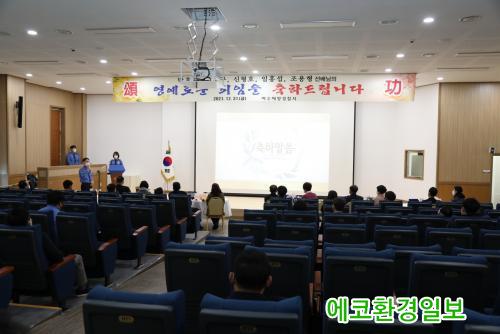 À̹ø ¿µ¿¹·Î¿î Á¤³âÅðÁ÷À» ¸ÂÀÌÇØ ÀçÁ÷±â°£ µ¿¾È ÇØ¾ç°æÂû ¹ßÀüÀ» À§ÇØ Çå½Å°ú ±¹°¡¿¡ ±â¿©ÇÑ °øÀûÀ» ÀÎÁ¤¹ÞÀº °æÂû°ü ±è¿ë±¸, ½ÅÇüÈ£ °æ°¨, ÀÓÈ«¼· °æÀ§, Á¶¿ëÇü Áֻ纸¿¡°Ô ÈÆÀå ¹× Æ÷ÀåÀ» ¼ö¿© Çß´Ù.
