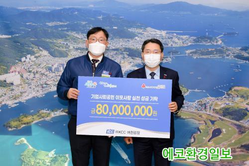 Àå°æ±â °øÀåÀå(¢ßKCC ¿©Ãµ°øÀå)Àº ¡°°Ü¿ïö ÇÑÆÄ¿Í Äڷγª19 Àå±âÈ·Î Èûµç ½Ã°£À» º¸³»°í ÀÖÀ» »ýȰÀÌ ¾î·Á¿î ºÐµé¿¡°Ô Èñ¸Á°ú ¿ë±â¸¦ µå¸®°íÀÚ ¼º±ÝÀ» ¸¶·ÃÇß´Ù¡±¸ç, ¡°Áö¼ÓÀûÀÎ ÈÄ¿ø°ú ³ª´®ÀÇ ½ÇõÀº ¿ì¸® ±â¾÷ÀÇ ¼ºÀå°ú Áö¿ª¹ÎµéÀÇ ´õ ÁÁÀº »îÀ» ÇÔ²² ¸¸µé¾î°¡´Â °úÁ¤À̶ó »ý°¢ÇÏ°í ¾ÕÀ¸·Îµµ »çȸ°øÇå¿¡ ´õ¿í ³ë·ÂÇϰڴ١±°í ¸»Çß´Ù.