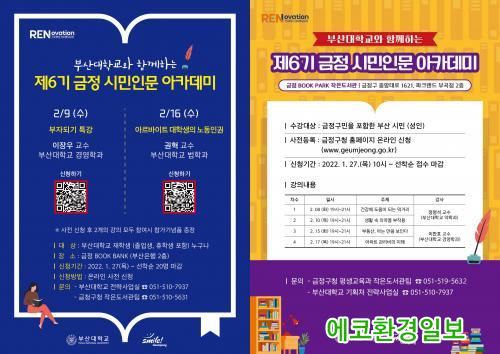 [¿¡ÄÚȯ°æÀϺ¸=º¯ÀçÈ£ ±âÀÚ] ±ÝÁ¤±¸(±¸Ã»Àå Á¤¹Ì¿µ)¿¡¼´Â ¿À´Â 2¿ù 8ÀϺÎÅÍ 17ÀϱîÁö ÃÑ 6ȸ¿¡ °ÉÃÄ ºÎ»ê´ëÇб³¿Í ÇÔ²²ÇÏ´Â ¡®Á¦6±â ±ÝÁ¤ ½Ã¹Î Àι® ¾ÆÄ«µ¥¹Ì¡¯¸¦ ¿î¿µÇÑ´Ù.
