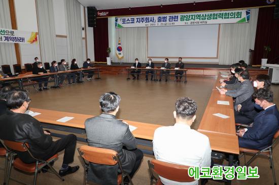 ÇùÀÇȸ´Â ¡°Æ÷½ºÄÚ°¡ Àü ¼¼°è¿¡ ´õºÒ¾î ¹ßÀüÇÏ´Â ±â¾÷½Ã¹ÎÀÇ ÁøÁ¤ÇÑ ¸ð¹ü»ç·Ê°¡ µÇ±â¸¦ ¹Ù¶õ´Ù¡±¸ç, ¡â±¤¾çÁö¿ª¿¡ ½Å»ç¾÷ ÅõÀÚ È®´ë ¹× ±âÁ¸ ÅõÀÚ°èȹ Â÷Áú ¾øÀÌ ÃßÁø, ¡âÁö¿ªÀÎÀçÀÇ Á÷¾÷±³À°À» Áö¿ø°ú ¿ì¼± ä¿ë º¸Àå, ¡âºÒÇÕ¸®ÇÑ ±¸¸ÅÁ¦µµ °³¼±°ú Áö¿ª¾÷ü ÀÔÂûÀ» È®´ëÇÏ´Â Áö¿ª°æÁ¦ Ȱ¼ºÈ ¹æ¾È ¸¶·Ã, ¡â±¤¾çÁö¿ª»ó»ýÇù·ÂÇùÀÇȸ¿¡ µ¿ÂüÇÏ¿© ÇùÀÇȸ°¡ ¿ä±¸ÇÑ »çÇ×À» Àû±Ø ÀÌÇàÇÒ °Í µî ³× °¡Áö »çÇ×À» ÁÖ¹®Çß´Ù.