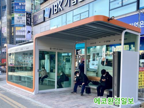 [¿¡ÄÚȯ°æÀϺ¸=ÀÌÀçö ±âÀÚ] ´çÁø½Ã°¡ ¹Ì¼¼¸ÕÁö, ÇÑÆÄ, ÀÚµ¿Â÷ ¹è±â°¡½º µîÀ» ÇÇÇØ ÄèÀûÇѠȯ°æ¿¡¼­ ¹ö½º¸¦ ±â´Ù¸± ¼ö Àִ ½º¸¶Æ® ½Â°­ÀåÀ» ±¸Å͹̳ΠȸÀü±³Â÷·Î ºÎ±Ù¿¡ ¼³Ä¡Çϰí 3ÀÏ Áذø½ÄÀ» ÁøÇàÇß´Ù.
