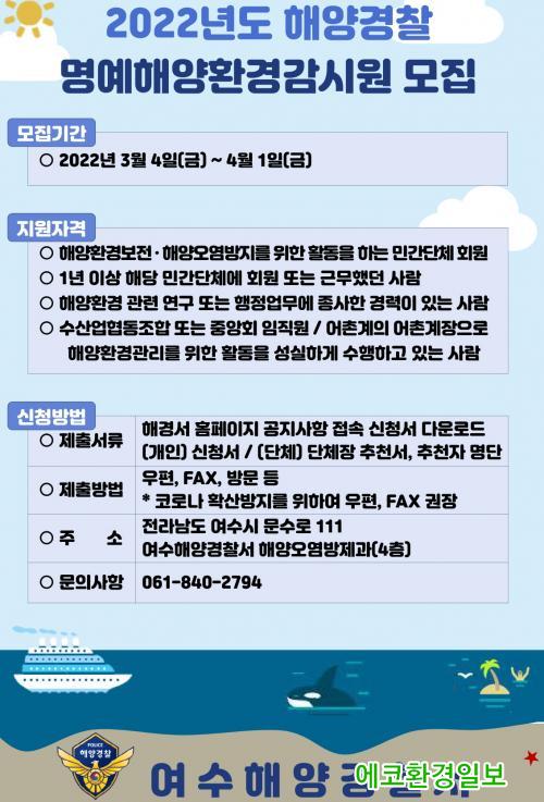 ¿©¼öÇØ°æ¿¡ µû¸£¸é Áö³ 3¿ù 4ÀϺÎÅÍ ¿À´Â 4¿ù 1ÀϱîÁö NGO ´Üü, ÇØ¾ç・¼ö»ê Á¾»çÀÚ µîÀ» ´ë»óÀ¸·Î ÇØ¾È°¡ µî ÇØ¾ç¿À¿° °¨½Ã¸ÁÀÌ Ãë¾àÇÑ »ç°¢Áö´ë ¹× ±¹¹Î ´«³ôÀÌ¿¡ ¸Â´Â ÇØ¾ç¿À¿°°¨½Ã¸¦ À§ÇÑ ¸í¿¹Çؾçȯ°æ°¨½Ã¿øÀ» ¸ðÁýÇÑ´Ù.