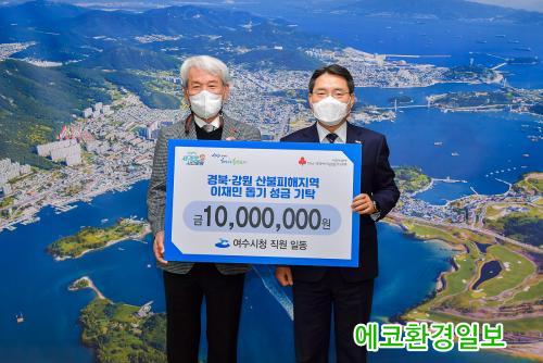 [¿¡ÄÚȯ°æÀϺ¸=±è±â³² ±âÀÚ] ¿©¼ö½Ã´Â °æºÏ ¿ïÁø°ú °¿ø »ïô µîÁö¿¡¼ ¹ß»ýÇÑ »êºÒÀÇ ÇÇÇØº¹±¸¿Í ÀÌÀç¹ÎµéÀ» µ½±â À§ÇØ Á÷¿øµéÀÌ Àû¸³ÇÑ ¼º±Ý 1õ¸¸ ¿øÀ» Àü¶ó³²µµ »çȸº¹Áö°øµ¿¸ð±Ýȸ¿¡ ±âŹÇß´Ù°í ¹àÇû´Ù. Áö³ 11ÀÏ ½ÃÀå½Ç¿¡¼ ¼º±Ý Àü´Þ½ÄÀÌ ¿·È´Ù.