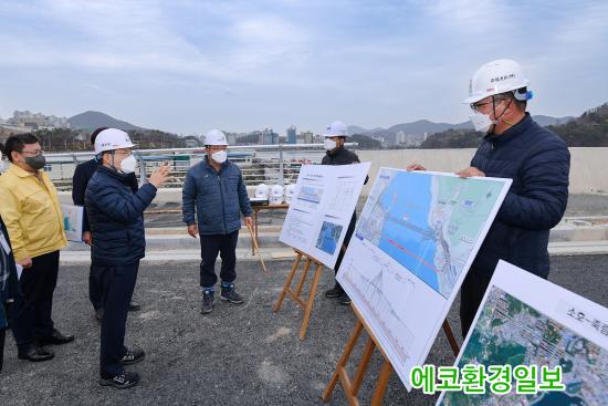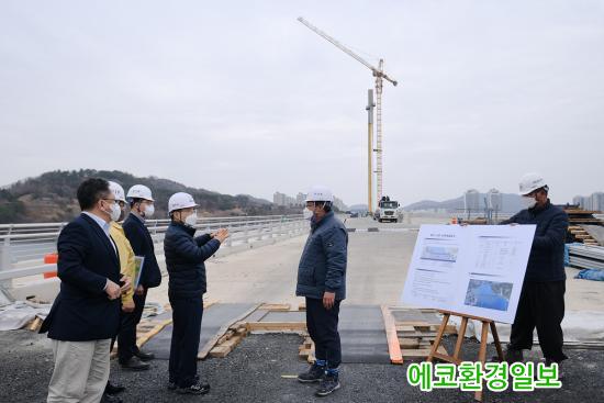 »çÁø=±Ç¿ÀºÀ ¿©¼ö½ÃÀåÀÌ 17ÀÏ ¿õõ~¼ÒÈ£ °£ ÇØ»ó±³·® °ø»ç ÇöÀåÀ» ¹æ¹®Çϰí ÁøÇà»óȲÀ» Á¡°ËÇϰí ÀÖ´Ù.