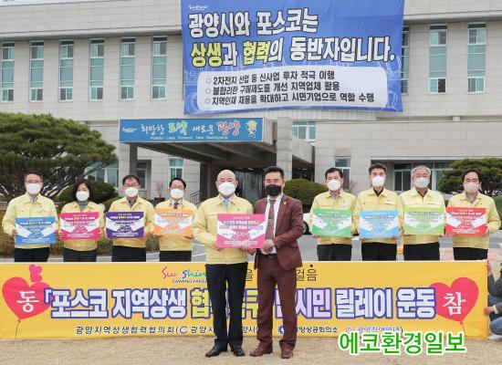 ±¤¾çÁö¿ª»ó»ýÇù·ÂÇùÀÇȸÀÇ °øµ¿À§¿øÀåÀÎ Á¤Çöº¹ ±¤¾ç½ÃÀåÀº ¸±·¹ÀÌ ¿îµ¿¿¡ µ¿ÂüÇÏ¸ç ¡°»ó»ý°ú Çù·ÂÀÇ µ¿¹ÝÀÚÀÎ ±â¾÷½Ã¹Î Æ÷½ºÄÚ°¡ ±¤¾çÀÇ »õ·Î¿î 100³âÀ» À§ÇÑ Ã¹°ÉÀ½¿¡ ½Ã¹Îµé°ú ÇÔ²²ÇØÁÙ °ÍÀ» ¿äûÇÑ´Ù¡±°í ¸»Çß´Ù.