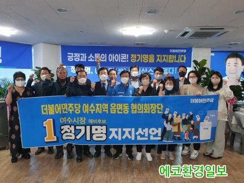3ÀÏ ¿ÀÈÄ 2½Ã ´õºÒ¾î¹ÎÁÖ´ç ¿©¼öÁö¿ªÀ¾¸éµ¿ÇùÀÇȸÀå´Ü 20¿© ¸íÀº Á¤±â¸í ¿©¼ö½ÃÀå ¿¹ºñÈĺ¸ ´õºÒ¾îÄ·ÇÁ¿¡¼ ¡®ÁöÁö¼±¾ð¹®¡¯ ³¶µ¶°ú ÇÔ²² Á¤ ¿¹ºñÈĺ¸ ÁöÁö¸¦ °ø½Ä ¼±¾ðÇß´Ù.