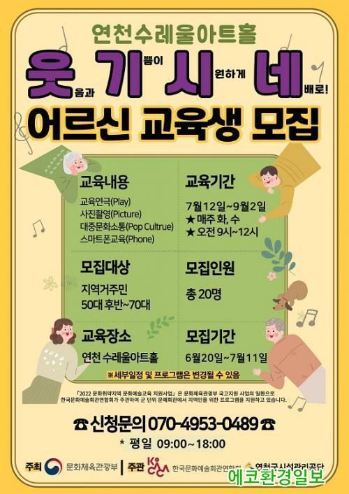 [¿¡ÄÚȯ°æÀϺ¸=ÀÓä¼® ±âÀÚ]¿¬Ãµ±º½Ã¼³°ü¸®°ø´ÜÀº Çѱ¹¹®È¿¹¼úȸ°ü¿¬ÇÕȸÀÇ ½Å±Ô»ç¾÷ ¹®ÈÃë¾àÁö¿ª ¹®È¿¹¼ú±³À° Áö¿ø»ç¾÷¿¡ ¼±Á¤µÅ ¿¬ÃµÁö¿ª ¾î¸£½ÅµéÀ» ´ë»óÀ¸·Î ¿¬±Ø ±â¹ÝÀÇ ±³À°ÇÁ·Î±×·¥ ¡®¿ô±â½Ã³×!¡¯¸¦ ÁøÇàÇÑ´Ù.
