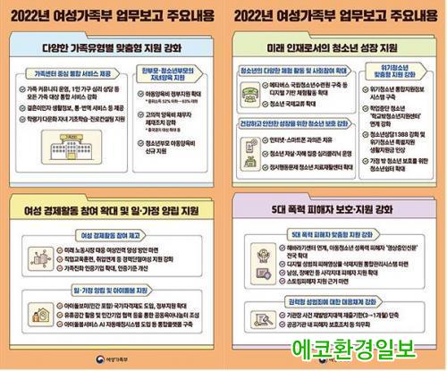 ¿©°¡ºÎ´Â ±¹Á¤°úÁ¦¸¦ Áß½ÉÀ¸·Î ¡ã´Ù¾çÇÑ °¡Á·À¯Çüº° ¸ÂÃãÇü Áö¿ø °È ¡ã¿©¼º °æÁ¦È°µ¿ Âü¿© È®´ë ¹× ÀÏ¡¤°¡Á¤ ¾ç¸³ Áö¿ø ¡ã¹Ì·¡ ÀÎÀç·Î¼ÀÇ Ã»¼Ò³â ¼ºÀå Áö¿ø ¡ã5´ë Æø·Â ÇÇÇØÀÚ º¸È£¡¤Áö¿ø °È µî 4´ë ÇٽɰúÁ¦¸¦ ÃßÁøÇÑ´Ù.