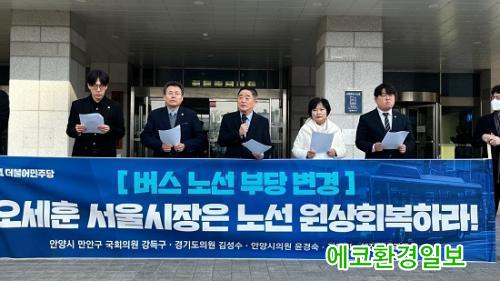 ÀÌ¿¡, °µæ±¸ ÀÇ¿ø°ú ¾È¾ç¸¸¾È ½Ã¡¤µµÀÇ¿øµéÀº ¡°¼¿ï½Ã´Â ³ë¼± º¯°æ¿¡ ´ëÇØ ´Ù½Ã °ËÅäÇØ¾ß ÇÑ´Ù¡±¸ç, ¡°¼¿ï½Ã¿Í °æ±âµµÀÇ ÇùÀÇ °úÁ¤¿¡¼ 10°³ÀÇ ³ë¼± Áß 3°³ÀÇ ³ë¼±º¯°æÀ» ÇÕÀÇÇߴµ¥ ±× Áß 2°³ ³ë¼±ÀÌ ¾È¾ç½Ã¿¡ ÁýÁßµÈ °ÍÀº µµ¹«Áö ÇüÆò¼º¿¡ ¸ÂÁö ¾Ê´Â´Ù¡±°í ÁÖÀåÇß´Ù.
