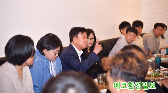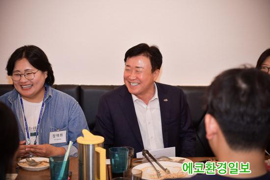 ½ÃÀå°ú Á÷¿ø°úÀÇ °ÝÀÇ ¾ø´Â ´ëȸ¦ À§ÇØ ½ÃûÀ» ¹þ¾î³ª ºê·±Ä¡ Ä«Æä¿¡¼ ÁøÇàµÈ °£´ãȸ¿¡¼ Á¤ ½ÃÀåÀº ¹Î¿ø ´ã´ç °ø¹«¿øÀÇ ¾Ö·Î»çÇ×À» Á÷Á¢ ûÃëÇÏ°í ³ë°í¸¦ °Ý·ÁÇß´Ù.