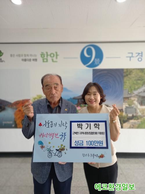 [¿¡ÄÚȯ°æÀϺ¸ ÇÔ¾È=À̽ŵ¿±âÀÚ]ÇԾȱº ±ººÏ¸é Áö¿ª»çȸº¸ÀåÇùÀÇü ¹Ú±âÇÐ ¹Î°£À§¿øÀåÀº Ãß¼®À» ¸ÂÀÌÇØ 12ÀÏ ÀÌ¿ôµ½±â ¼º±Ý 100¸¸ ¿øÀ» ±ººÏ¸é¿¡ ±âŹÇÏ¸ç µû¶æÇÑ ¿ÂÁ¤À» ³ª´³´Ù.