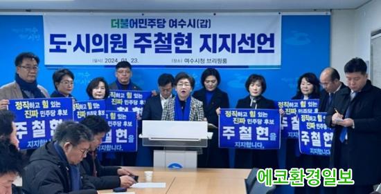 ¹ÎÁÖ´ç ¿©¼ö °©Áö¿ª µµÀÇ¿ø 4¸í°ú ½ÃÀÇ¿ø 12¸íÀº 23ÀÏ ¿ÀÀü ½Ãû ºê¸®Çη뿡¼ 22´ë ÃѼ± ÁÖöÇö Èĺ¸ ÁöÁö ¼±¾ð ±âÀÚȸ°ßÀ» ÁøÇàÇß´Ù.