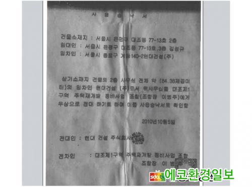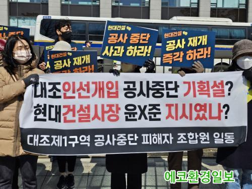 ´ë±â¾÷ Çö´ë°Ç¼³ÀÌ ÀÏÂïºÎÅÍ µ¶Á¡ÇÏ¿© Çö´ë°Ç¼³ÀÇ ¼ö ½Ê¾ï ¿ø ºÒ¹ý »ç¾÷ Àڱݴ뿩, 2014³â ÀÌ»ó Á¶ÇÕ »ç¹«½Ç ¹«»ó Á¦°ø, µ¿ÀǼ, ¹ßÀǼ µî °¢Á¾ ¼¸é ¡±¸ ¿ë¿ª¿ø ÅõÀÔ, ¼Ò¼Ûºñ¿ë ´ë³³ ¹× ³ú¹° Á¦°ø µî 2010³â ~ 2011³â Á¶ÇÕ¼³¸³ ´Ü°èºÎÅÍ ¹Ù¶÷ Àß ³¯ ¾ø¾ú´ø ´ëÁ¶1±¸¿ªÀº 2016³â ¹®Á¦ÀÇ A Á¶ÇÕÀå Çö Á¶ÇÕ ÁýÇàºÎ°¡ µé¾î¼°í 2017³â ½Ã°ø»ç¸¦ ¼±Á¤ÇÏ¸ç »ç¾÷ÀÌ ÁøÃ´µÇ´Â µí ÇÏ¿´À¸³ª ÃÖ±Ù ÀüÀÓ Á¶ÇÕÀå A , ½Ã°ø»ç B ¿ÍÀÇ °ËÀº À¯Âø °ü°è°¡ Ç¥¸éÀ¸·Î ¿Ã¶ó¿À¸é¼ ÇöÀç °ø»ç´Â ÁߴܵǾú°í, Á¶ÇÕ¿øµéÀº Å« È¥¶õ¿¡ ºüÁ® ÀÖ´Ù.