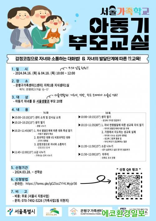 ¡®¾Æµ¿±â ºÎ¸ð±³½Ç¡¯Àº ¿À´Â 16Àϰú 18ÀÏ, ¿ÀÀü 10½ÃºÎÅÍ 12½Ã±îÁö ÀºÆò±¸ °¡Á·¼¾ÅÍ¿¡¼ ÁøÇàµÈ´Ù. ½ÅûÀº Æ÷½ºÅ͸¦ Âü°íÇØ ¿Â¶óÀÎ ¸µÅ©·Î Á¢¼ÓÇØ ÇϸéµÈ´Ù.