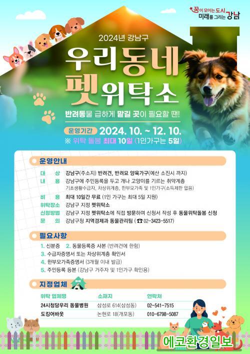 ÀÌ¿ë´ë»óÀº °³²±¸¿¡ Áֹεî·ÏÀ» µÎ°í ±âÃÊ»ýȰ¼ö±ÞÀÚ, Â÷»óÀ§°èÃþ, ÇѺθð°¡Á· µî Ãë¾à°èÃþ°ú 1ÀÎ °¡±¸´Ù. 1ÀÎ °¡±¸ÀÇ °æ¿ì ¼Òµæ Á¦ÇÑÀÌ ¾ø´Ù. Ãë¾à°èÃþÀº ÃÖ´ë 10ÀÏ, 1ÀÎ °¡±¸´Â ÃÖ´ë 5ÀϱîÁö ¹«·á·Î ÀÌ¿ëÇÒ ¼ö ÀÖÀ¸¸ç, ÇÏ·ç ´ÜÀ§µµ ½ÅûÀÌ °¡´ÉÇÏ´Ù. À§Å¹ Àå¼Ò´Â û´ãµ¿ ¼ÒÀç 24½Ãû´ã¿ì¸® µ¿¹°º´¿ø(¢Ï02—541-7515), °³Æ÷µ¿ ¼ÒÀç µµÅ·¾î¹Ù¿ô(¢Ï010-6798-5087) 2°÷ÀÌ´Ù.
