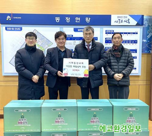[¿¡ÄÚȯ°æÀϺ¸ ½ÃÈï½Ã=À̽ŵ¿±âÀÚ] ½Ãȵ¿»ê±³È¸´Â Áö³ 26ÀÏ ¿¬¸»À» ¸Â¾Æ Á¤¿Õ1µ¿ ÇàÁ¤º¹Áö¼¾Å͸¦ ¹æ¹®ÇØ °ü³» ¾î·Á¿î ÀÌ¿ôÀ» µ½°íÀÚ ¶ó¸é, ½Ä¿ëÀ¯, ÇÞ¹Ý µî ´Ù¾çÇÑ ½Ä·áǰÀÌ ´ã±ä µû¶æÇÑ Èñ¸Á »óÀÚ 30°³¸¦ ±âºÎÇϰí Àü´Þ½ÄÀ» °¡Á³´Ù.
