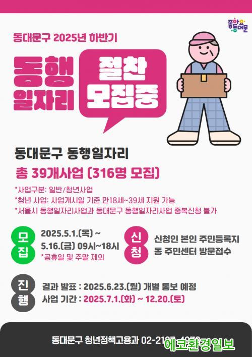 [¿¡ÄÚȯ°æÀϺ¸ µ¿´ë¹®±¸=À̽ŵ¿±âÀÚ] ¼­¿ï µ¿´ë¹®±¸´Â 5¿ù 1ÀϺÎÅÍ 16ÀϱîÁö ¡®2025³â ÇϹݱ⠵¿´ë¹®±¸ µ¿ÇàÀÏÀÚ¸®»ç¾÷¡¯ Âü¿©ÀÚ 316¸íÀ» ¸ðÁýÇÑ´Ù.