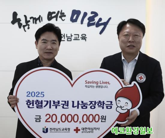 [¿¡ÄÚȯ°æÀϺ¸ Àü³²=À̽ŵ¿±âÀÚ] Àü¶ó³²µµ±³À°Ã»°ú ´ëÇÑÀû½ÊÀÚ»ç ±¤ÁÖÀü³²Ç÷¾×¿øÀÌ Áö³­ 19ÀÏ¡®2025³â ÇåÇ÷±âºÎ±Ç ³ª´®ÀåÇÐ±Ý Àü´Þ½Ä¡¯À» ¿­°í, µµ³» °íµîÇлý 20¸í¿¡°Ô ÃÑ 2,000¸¸ ¿øÀÇ ÀåÇбÝÀ» Àü´ÞÇß´Ù.