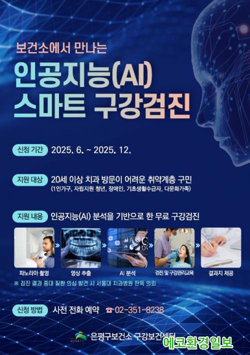[¿¡ÄÚȯ°æÀϺ¸ ÀºÆò±¸=À̽ŵ¿±âÀÚ] ¼­¿ï ÀºÆò±¸´Â º¸°Ç¼Ò¿¡¼­ ÀΰøÁö´É(AI) ºÐ¼®À» ±â¹ÝÀ¸·Î ÇÑ ¡®½º¸¶Æ® ±¸°­°ËÁø °ü¸® ½Ã½ºÅÛ¡¯À» ³»´ÞºÎÅÍ º»°Ý ¿î¿µÇϰí 22ÀϺÎÅÍ »çÀü ÀüÈ­ Á¢¼öÇÑ´Ù°í ¹àÇû´Ù.