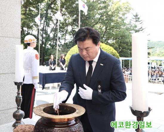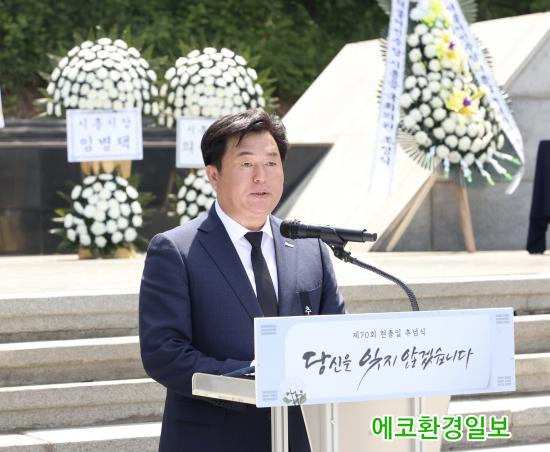 ÀÓº´Åà ½ÃÀåÀº Ãß³ä»ç¸¦ ÅëÇØ ¡°Á¶±¹À» À§ÇØ °í±ÍÇÑ »ý¸íÀ» ¹ÙÄ¡½Å ¼ø±¹¼±¿°ú È£±¹¿µ·Éµé¿¡ ´ëÇÑ ±íÀº Ã߸ð¿Í °¨»çÀÇ ¸¶À½À» ÀüÇÑ´Ù. ±× ¼þ°íÇÑ Çå½ÅÀº °áÄÚ ÀØÇô¼´Â ¾È µÇ¸ç ¿ì¸® °¡½¿ ¼Ó¿¡ ±æÀÌ ³²¾Æ¾ß ÇÑ´Ù¡±¶ó°í ¸»Çß´Ù. ÀÌ¾î ¡°½Ã´Â ±¹°¡¸¦ À§ÇØ Çå½ÅÇÑ ºÐµé°ú ±× °¡Á·µéÀÌ Á¸Áß¹Þ°í ¿¹¿ì¹Þ´Â »çȸ¸¦ ¸¸µé±â À§ÇØ Ã¥ÀÓ°ú ¿ªÇÒÀ» ´ÙÇϰڴ١±¶ó°í ¹àÇû´Ù.