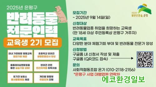 2±â ±³À° °úÁ¤ ¸ðÁý ÀοøÀº 25¸íÀÌ´Ù. ¸ðÁý ´ë»óÀº ÀºÆò±¸¿¡ Áֹεî·ÏÀ» µÐ ¸¸ 18¼¼ ÀÌ»ó ±¸¹ÎÀÌ¸ç ¸éÁ¢ ÀýÂ÷¸¦ °ÅÃÄ ±³À°»ýÀ» ¼±¹ßÇϰí ÀÚ¸³Áغñ û³â, °æ·Âº¸À¯ ¿©¼º, ¹ÌÃë¾÷ û³âÀ» ¿ì¼± ¼±¹ßÇÒ ¿¹Á¤ÀÌ´Ù.
