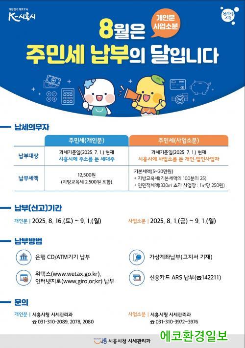 ¿ÃÇØ 7¿ù 1ÀÏÀ» ±âÁØÀ¸·Î ½ÃÈï½Ã¿¡ ÁÖ¼Ò¸¦ µÐ ¼¼´ëÁÖ´Â Áֹμ¼(°³ÀκÐ)¸¦ 8¿ù 16ÀϺÎÅÍ 9¿ù 1ÀϱîÁö, »ç¾÷¼Ò¸¦ µÐ °³Àΰú ¹ýÀÎÀº Áֹμ¼(»ç¾÷¼ÒºÐ)¸¦ 8¿ù 1ÀϺÎÅÍ 9¿ù 1ÀϱîÁö ½Å°í¤ý³³ºÎÇØ¾ß ÇÑ´Ù.