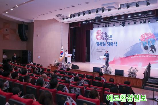 ÀÓº´Åà ½ÃÈï½ÃÀåÀº °æÃà»ç¿¡¼­ ¡°±¤º¹ 80ÁÖ³âÀº ¿ì¸® ¹ÎÁ· ¿ª»ç¿¡¼­ °áÄÚ ÀØÀ» ¼ö ¾ø´Â À§´ëÇÑ ÀÌÁ¤Ç¥¡±¶ó¸ç ¡°Á¶±¹ÀÇ µ¶¸³°ú ¹ø¿µÀ» À§ÇØ Çå½ÅÇϽе¶¸³À¯°øÀÚ¿Í À¯°¡Á·²² ±íÀº Á¸°æ°ú °¨»ç¸¦ µå¸°´Ù. ¾ÕÀ¸·Îµµ ±× °øÇå°ú Èñ»ýÀÌ ÇêµÇÁö ¾Êµµ·Ï ¼¼½ÉÇϰí Á¤ÁßÇÑ ¿¹¿ì¸¦ ´ÙÇϰڴ١±¶ó°í ¸»Çß´Ù.