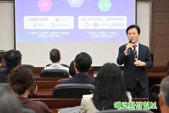 ÀÌ¾î ¡°ÀΰøÁö´É, ±âÈĺ¯È, Àú¼ºÀåÀÇ ½Ã´ë¸¦ »ì¾Æ°¡°í ÀÖ´Â 21¼¼±â ÃÖ°í°æ¿µÀڵ鿡°Ô µµÀü Á¤½Å°ú âÁ¶ Á¤½ÅÀ̶ó´Â ÀϹÝÀûÀÎ ±â¾÷°¡Á¤½Å¿¡ ´õÇØ Àΰ£ Á¸Áß°ú °øµ¿Ã¼ °¡Ä¡¸¦ Áß½ÃÇÏ´Â ÁøÁÖ K-±â¾÷°¡Á¤½Å¿¡ ÁÖ¸ñÇØ¾ß ÇÑ´Ù¡±°í ¸»Çß´Ù.
